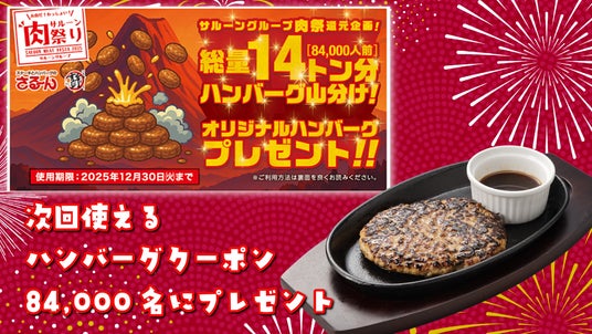 総量 14トン(84,000人前) のオリジナルハンバーグをプレゼント!期間中