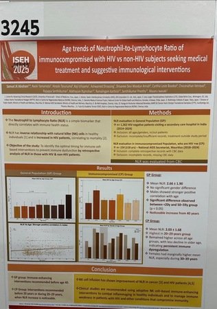 一方、モーリシャスでは、モーリシャス国立エイズ事務局と連携し、HIV陽性者における免疫バイオマーカーの比較評価を実施しました。その結果、HIV陽性者では、NLRが20~29歳でピークに達し、その後も持続的に高い値を維持することが明らかになりました。当該集団における免疫調節異常の早期発症を示すものであり、HIVケアにおける免疫介入のタイミングを考える必要があると研究者らは指摘しています。