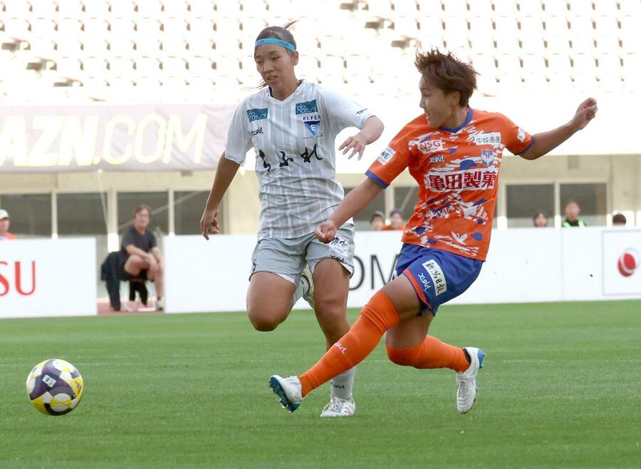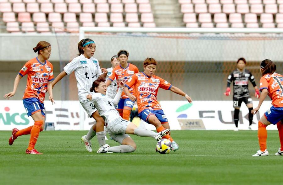 新潟Lは序盤から優位に試合を進め、後半は両サイドや中央からの分厚い攻撃でゴールに迫った。後半17分にMF杉田亜未のCKをFW城和怜奈が頭で合わせ先制した。26分にFW滝川結女が追加点を決め、36分にはFW那須野陽向が今季初ゴール。前後半合わせ計22本のシュートを浴びせた。