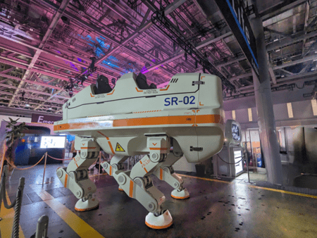 世界初、搭乗型4人乗り4足歩行ロボット「SR-02」。ひと際目を引く大型ロボットに、