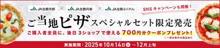 (1)内容:11月20日は「ピザの日」!JAタウン公式Xでは、京都・兵庫・福岡の「ご当地ピザ食べ比べセット」が抽選で4名様に当たるフォロー&リポストキャンペーンを実施します。
