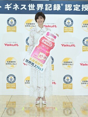 株式会社ヤクルト本社(本社:東京都港区、社長 成田 裕)は、「ヤクルト」ブランドが「最大の乳酸飲料/乳酸菌飲料ブランド(最新年間売上2024年)」として「ギネス世界記録™」に認定されたことを記念し、2025年10月14日(火)に「ヤクルト ギネス世界記録™認定授与式」を行いました。当日は、スペシャルゲストとして「豆乳の力」などのCMにご出演いただいた、俳優の内田有紀さんが登場し、会場を華やかに盛り上げました。