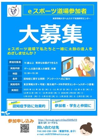 東京情報大学(設置者:学校法人東京農業大学)では70歳以上のシニア世代の方々を対象にeスポーツ道場を開場します。