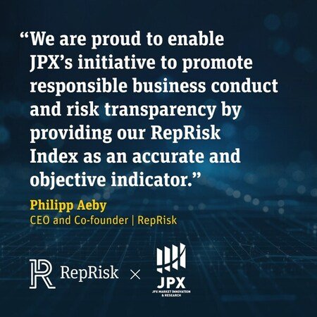 RepRiskのCEO兼共同創業者であるPhilipp Aebyは、「私たちは、JPXの責任ある企業行動とリスクの透明性の促進に向けた取り組みを、正確で客観的な指標である当社のRepRisk Indexを提供することで支援できることを誇りに思います。」とコメントしました。