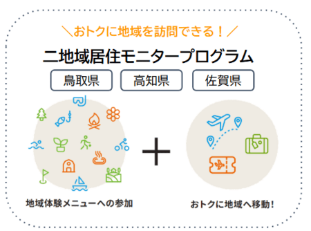 「二地域居住モニタープログラム」とは、本来の居住地と別の地域に拠点を持つ暮らし(二地域居住)を希