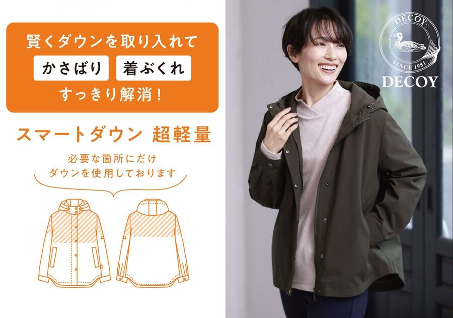 ブリティッシュトラッドにシーズントレンドを取り入れたカジュアルブランド「DECOY(デコイ)」は、2025年10月中旬より、気候やシーンに合わせて快適な暖かさを提供する新商品「スマートダウン」を発売いたします。かさばらない軽い生地を使用することで着ぶくれを防ぎながらも確かな暖かさを実現。長いシーズンで活躍する、スマートなアウターです。