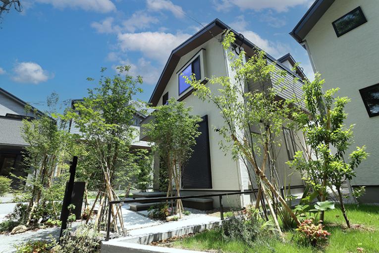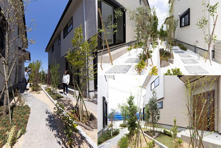 当分譲地では、住民が皆でつくる住環境としてわがまち意識を持ち、地域の緑の環境を育み、良好なコミュニティ醸成のため、独自の「緑の協定」を制定。周囲の景観を分譲地に取り込むため、地元造園学博士と在来種を中心に緑化率30%の植栽計画を実現。販売前からワークショップを開催し、学園町の「豊かな緑」が共有財産であるということに共感していただきました。「繋ぎ庭」における緑豊かな暮らしが、強い愛情と積極的なコミュニケーションを生み出します。多くの人と共に成長していく場所こそが「繋ぎ庭」です。