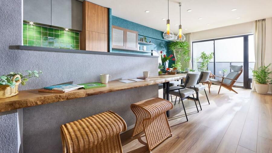また、無垢材カウンターを標準仕様とすることで、加工技術の継承にも繋がるなど、サスティナビリティにも貢献する取り組みです。住まい手にとっては視覚・嗅覚・触覚から得られるリラックス効果などが期待できます。