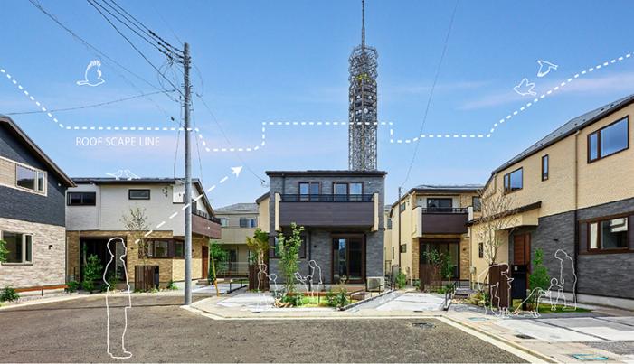 既存の共同住宅を挟み2区画に分断された全14棟の分譲住宅です。住まい手に加えて近隣地域住人を含めた多様な人が集まる場の創造だけでなく、事業者・住まい手・近隣住人・住宅建材メーカー・富山県生産者が一体となった産民横断型の連携体制を構築し、従来の分譲住宅にはない新しいコミュニティ醸成を喚起する永住を見据えた分譲住宅を提案しました。