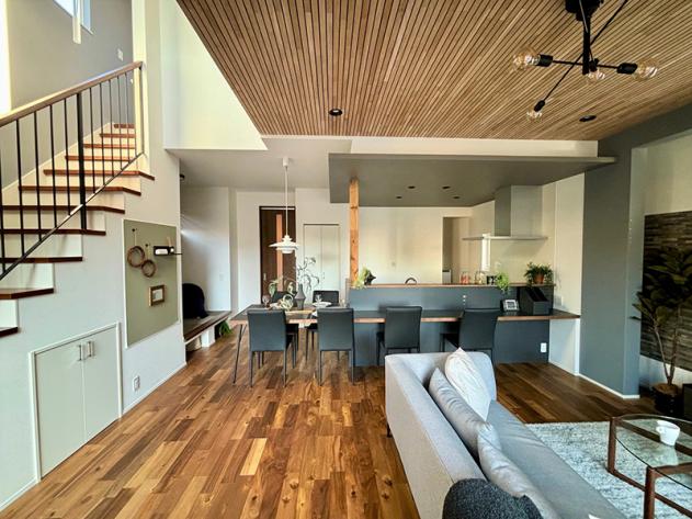 住まいの中心となるリビングダイニングに浮造りで仕上げた無垢材のカウンターを採用。キッチン一体設計とすることで様々なシーンでの使用が可能となり、家族が集まる空間を創出します。日常的に本物の木に触れ、子どもの五感を刺激し豊かな成長を促します。代々受け継ぐことが可能な仕様とすることで愛着を生み、持続可能な社会にも寄与します。