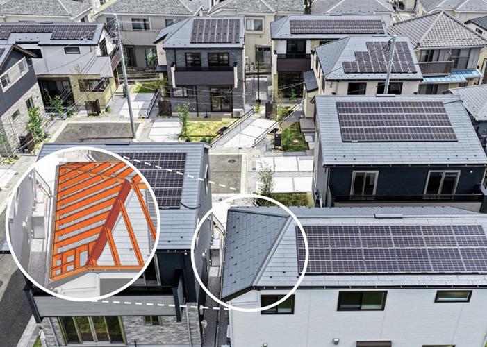 脱炭素社会の実現に向け、住宅への太陽光パネル搭載が進んでいます。東京都では2025年4月から、一定以上の住宅等を供給する事業者が新築する建物への設置等を義務付けました。しかし、都心部の建ぺい率いっぱいに建てられた家の屋根は、斜線制限のために勾配が急になりがちで、地上からの目線で太陽光パネルが見えてしまい美観を損なっています。また、発電効率が高くない方角に向けてやむを得ず設置してしまう問題もありました。