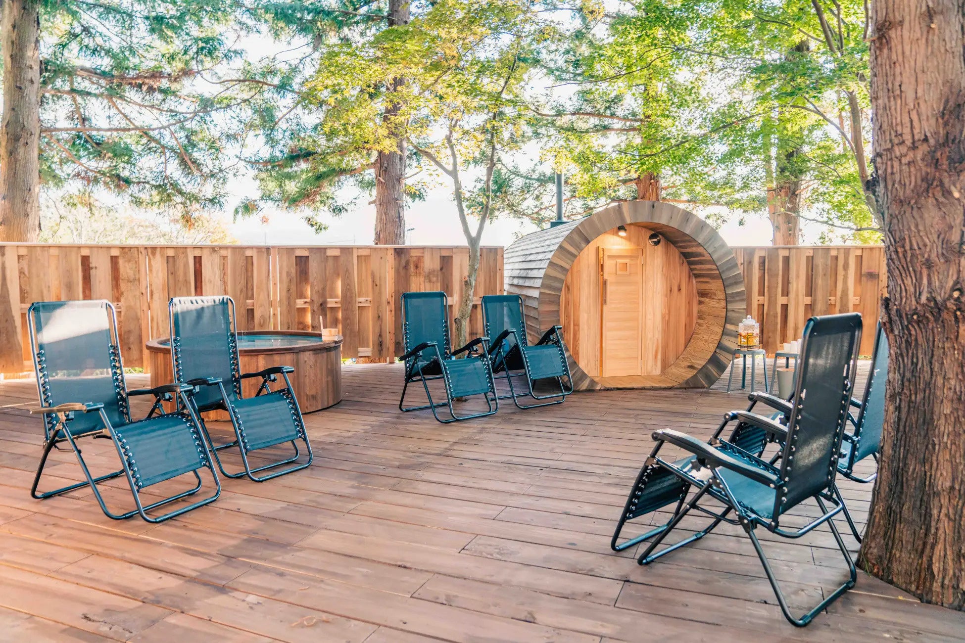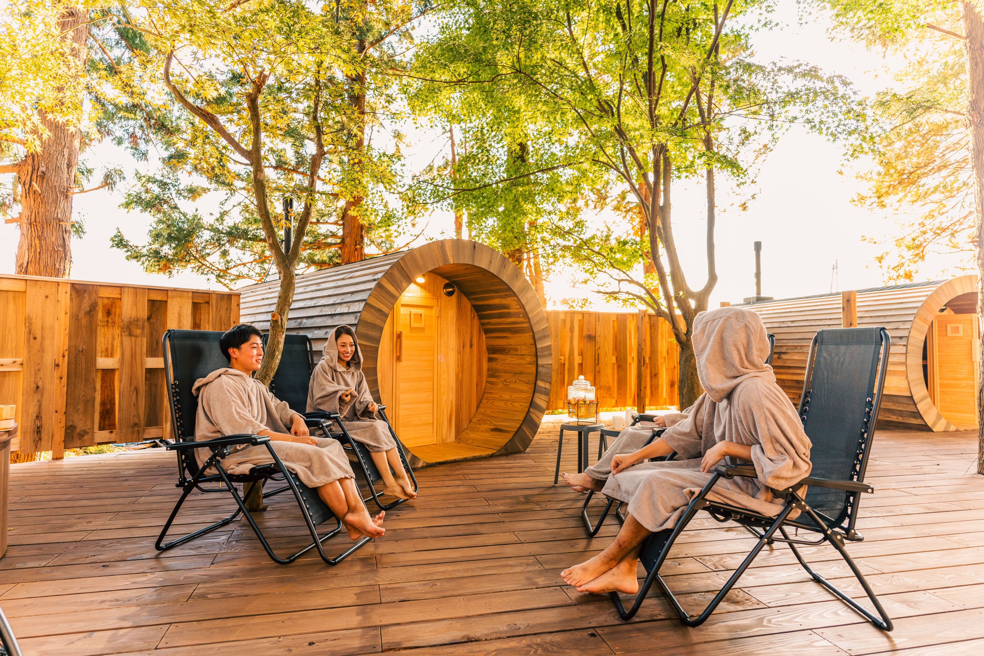 サウナを出た後は、森林に囲まれた開放的な森林浴を楽しめます。心地よい風と新潟の四季が生み出す贅沢な”ととのい”をお届けします。また、独立したプライベートサウナも併設しています。