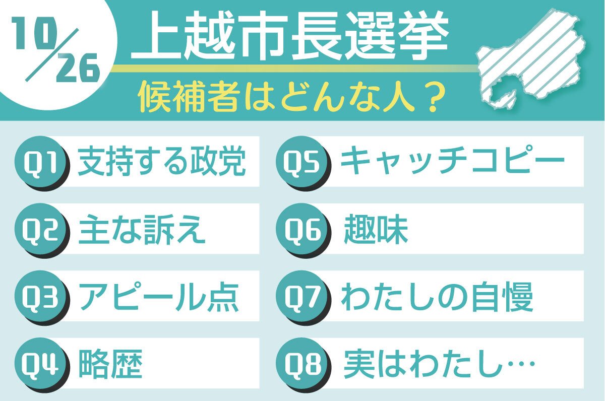 任期満了に伴う上越市長選が19日告示され、現職と元職、新人4人の計6人による異例の選挙戦となりました。立候補したのは届け出順に、無所属新人で元外交官の小菅淳一さん(73)、無所属新人で元市議会議長の石田裕一さん(62)、無所属元職の宮越馨さん(84)、再選を目指す無所属現職の中川幹太さん(50)、無所属新人で元参院議員の風間直樹さん(59)、無所属新人で前市議の丸山章さん(71)です。投開票日は26日です。