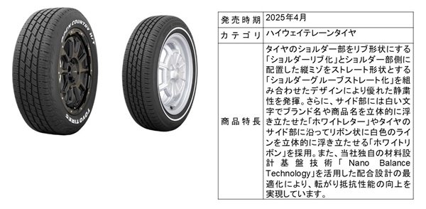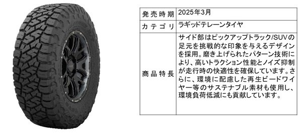 TOYO TIRE株式会社(本社:兵庫県伊丹市、社長:清水隆史)は、ピックアップトラック/SUV用ラギットテレーンタイヤ「OPEN COUNTRY R/T TRAIL(オープンカントリー アールティー トレイル)」、街乗り用ハイウェイテレーンタイヤ「OPEN COUNTRY H/T Ⅱ(オープンカントリー エイチティー ツー)」、軽ハイトワゴン専用プレミアムタイヤ「PROXES LuKⅡ(プロクセス エルユーケーツー)」の3商品が2025年度グッドデザイン賞(主催:公益財団法人日本デザイン振興会)を受賞しましたのでお知らせいたします。