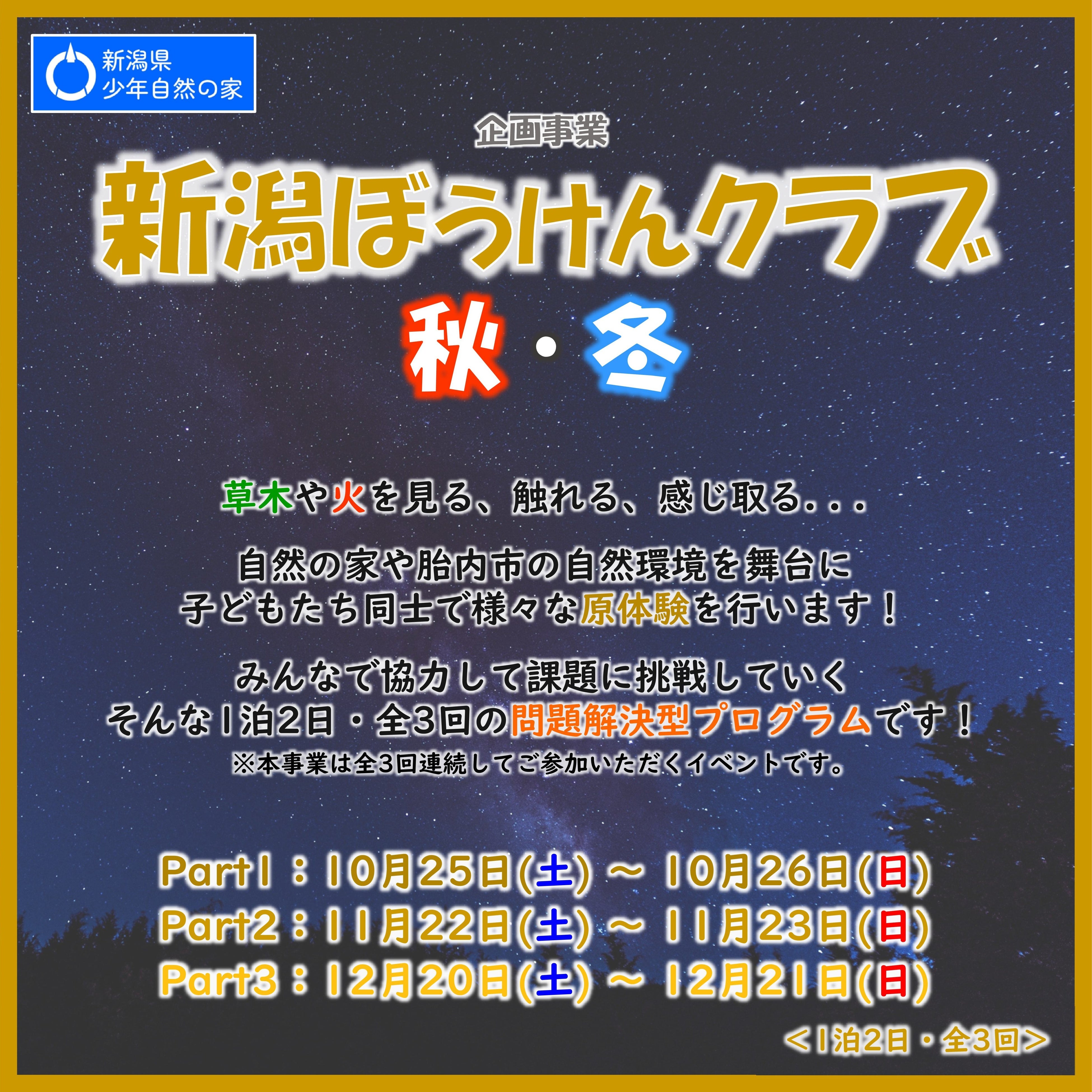 新潟県少年自然の家の主催イベント「新潟ぼうけんクラブ秋・冬」では、
