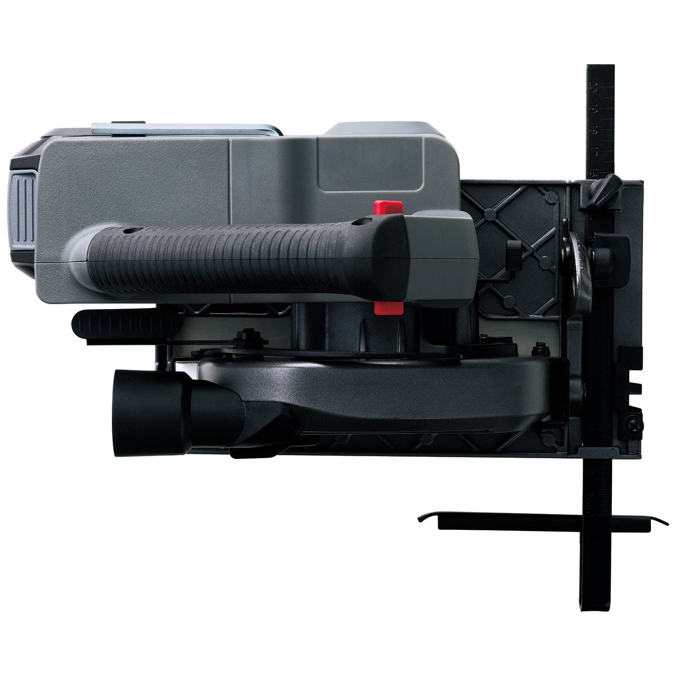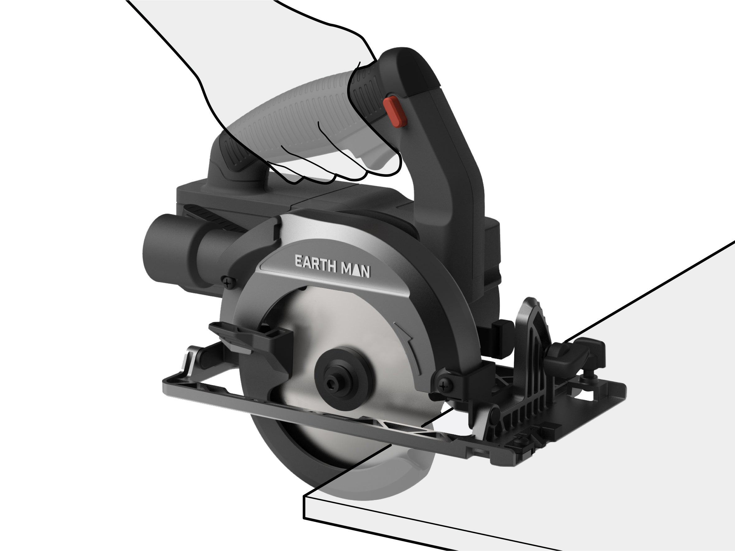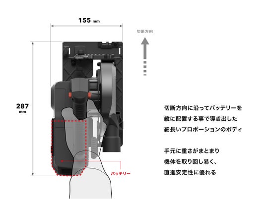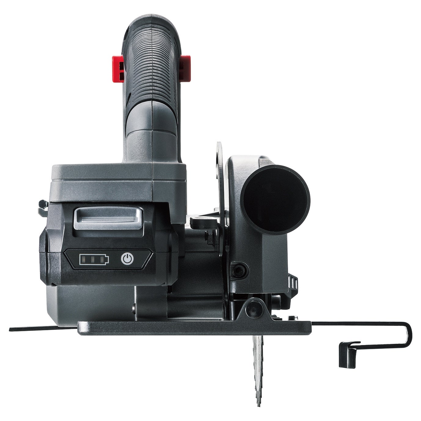 【製品・デザインの特徴】外径125mmの刃を装着し、木材や合板の直線切断に使用する電動工具。ブラシレスモーター搭載・18Vバッテリー使用で、取り回ししやすいコンパクトさがありながらパワフルな切断が可能です。