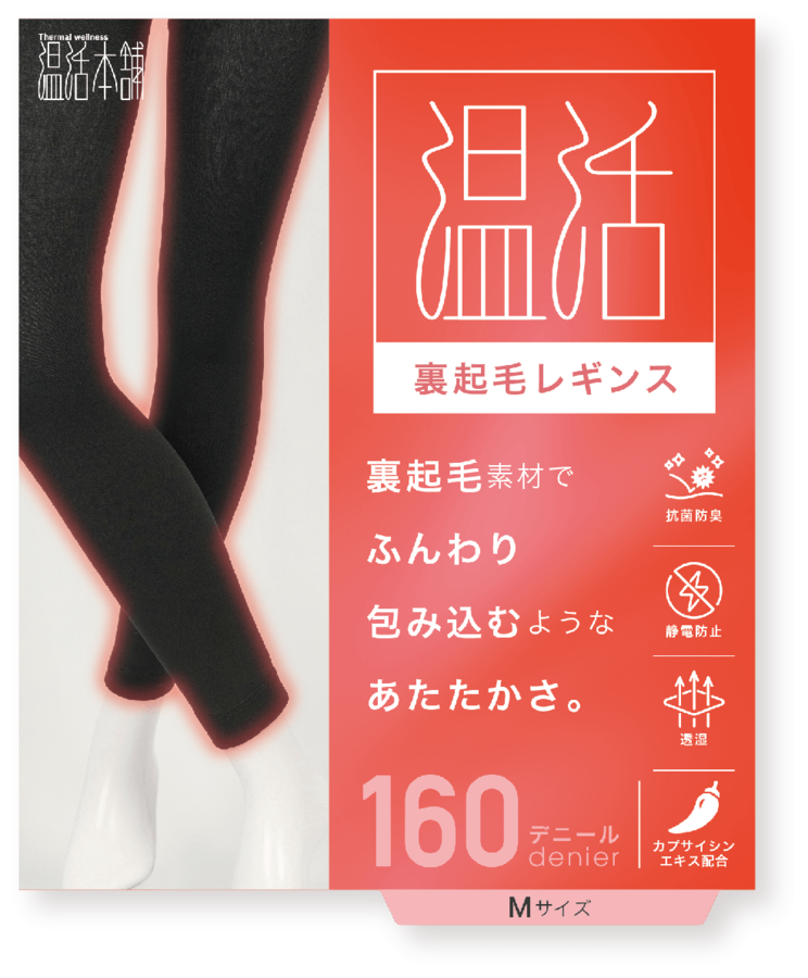 トウガラシの成分で有名な温感素材カプサイシン配合で、裏起毛素材でふんわり包み込むようなあたたかさ