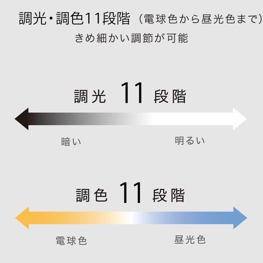 ②11段階の調光・調色&ワンボタンで快適空間へ