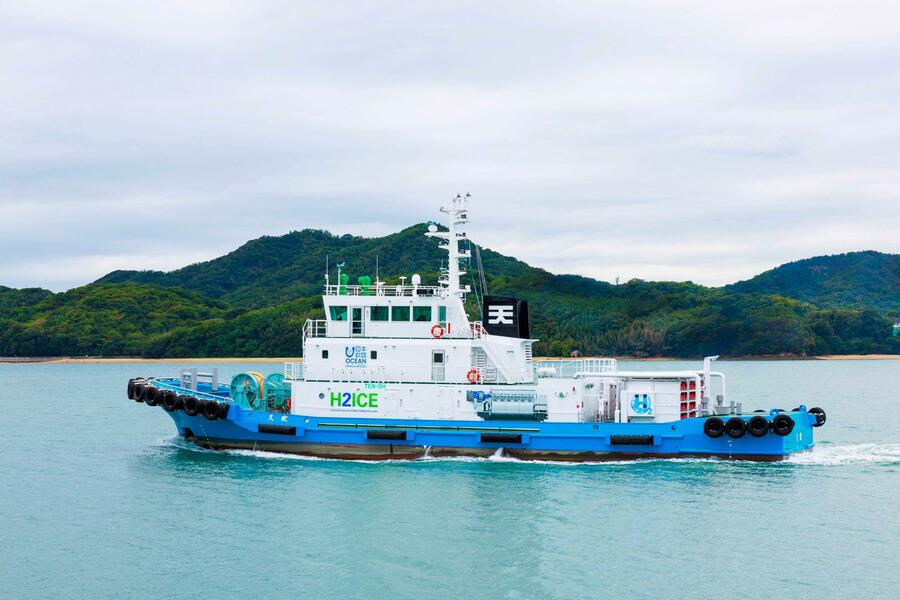 常石造船、国内初の水素燃料タグボートを進水 ~水素混焼エンジンの大出力化と船舶鋼材のグリーン化~