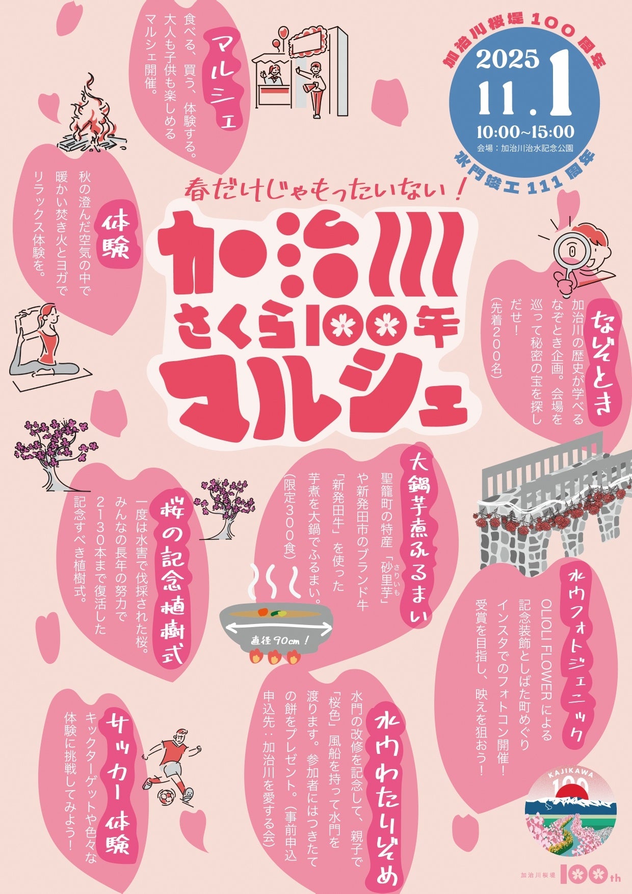 植樹100周年・水門111周年の節目に、“地域の記憶と未来”をつなぐ秋のマルシェ家族で楽しむ焚火・芋煮・謎解きも!