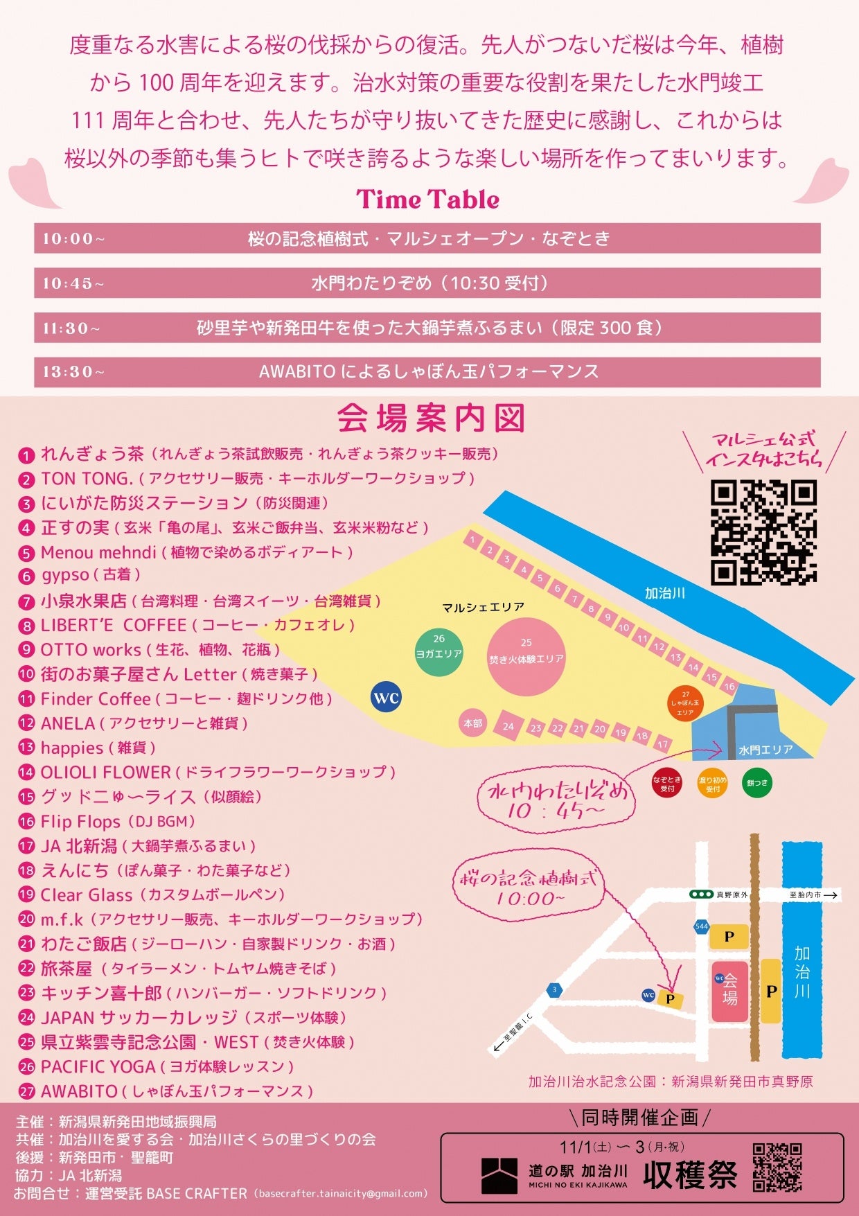 日程:2025年11月1日(土)10:00~15:00会場:加治川治水記念公園(新発田市真野原463-1)