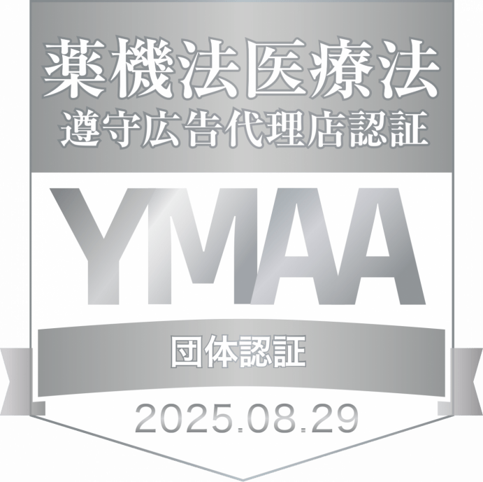 YMAA団体認証マーク制度は、一般社団法人薬機法医療法規格協会が、薬機法、医療法について、遵法に広告を行っている事業者に対して提供している認証制度です。一企業に一定数以上のYMAA個人認証資格者が在籍することが求められます。