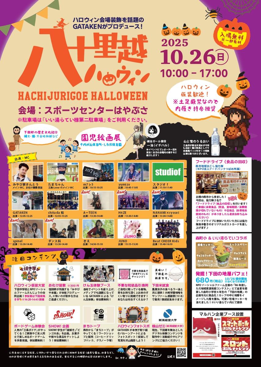 10月25日、26日、吉田西太田のNext Generation Town。スペシャルメニューの提供やステージイベント。仮装パレードは午後3時と6時。0256(77)9085。