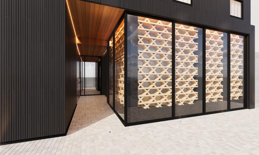 環境負荷の低減、地域経済の活性化、そして伝統技術の伝承を同時に実現する手段として、近年、木造建築への関心が急速に高まっています。鉄骨造や鉄筋コンクリート造が主流だった都市建築で、木の魅力と機能性を両立させた建築手法を模索する動きが加速する中、弊社の純木造8階建て本社ビルは、2024年3月に竣工しました。住宅市場の縮小や建築業界の縦割り構造といった課題を背景に、在来軸組工法の持つポテンシャルを再解釈し、既存の住宅インフラと普及材を活用して「誰もが扱える中大規模木造建築」を普及価格帯で実現。大手ゼネコン主導という既成概念を覆し、地域ビルダーや地場ゼネコンなど、多様なつくり手が参入できる仕組みを構築することで、業界構造の刷新と事業機会創出を目指した実証建築です。