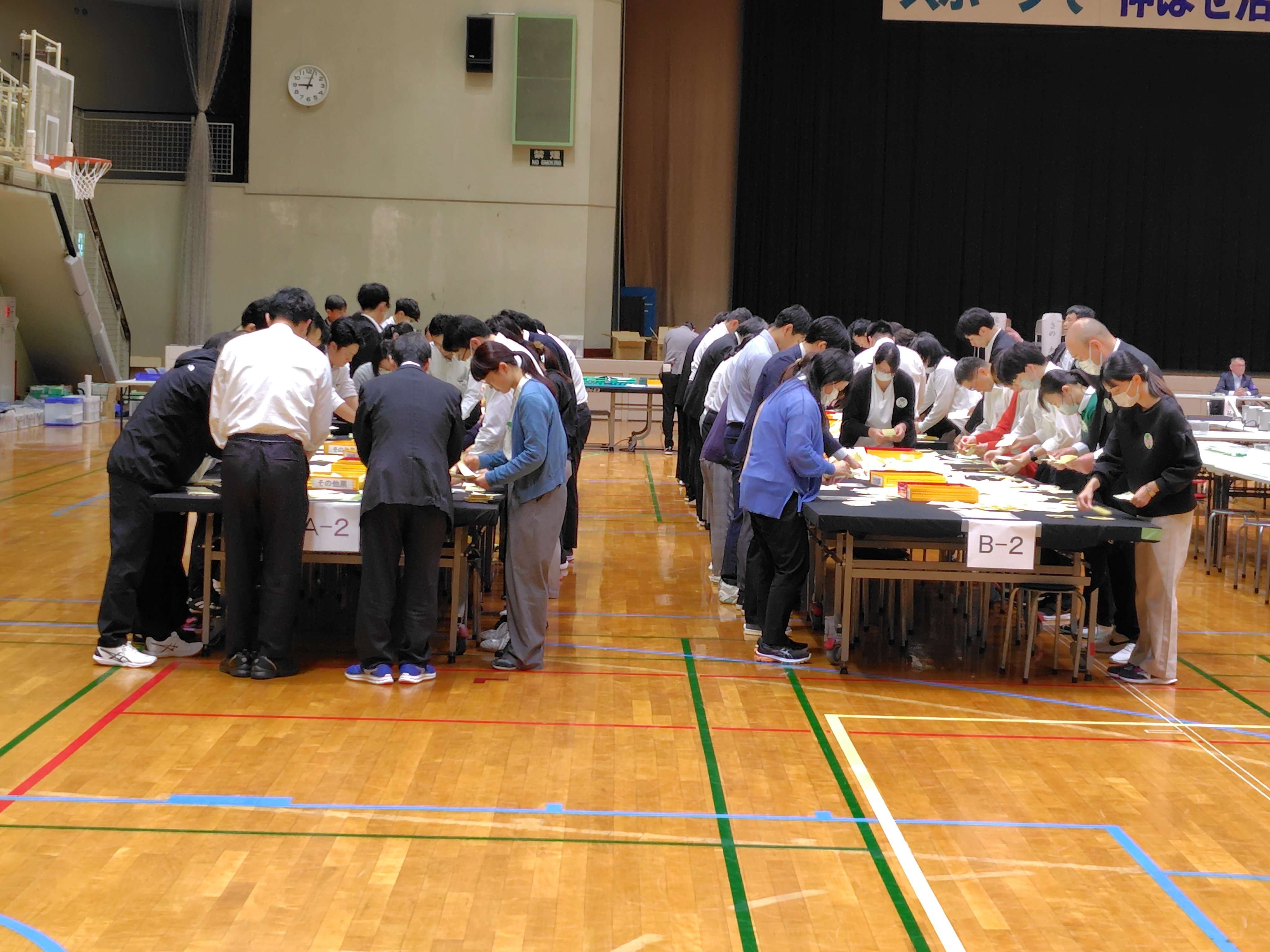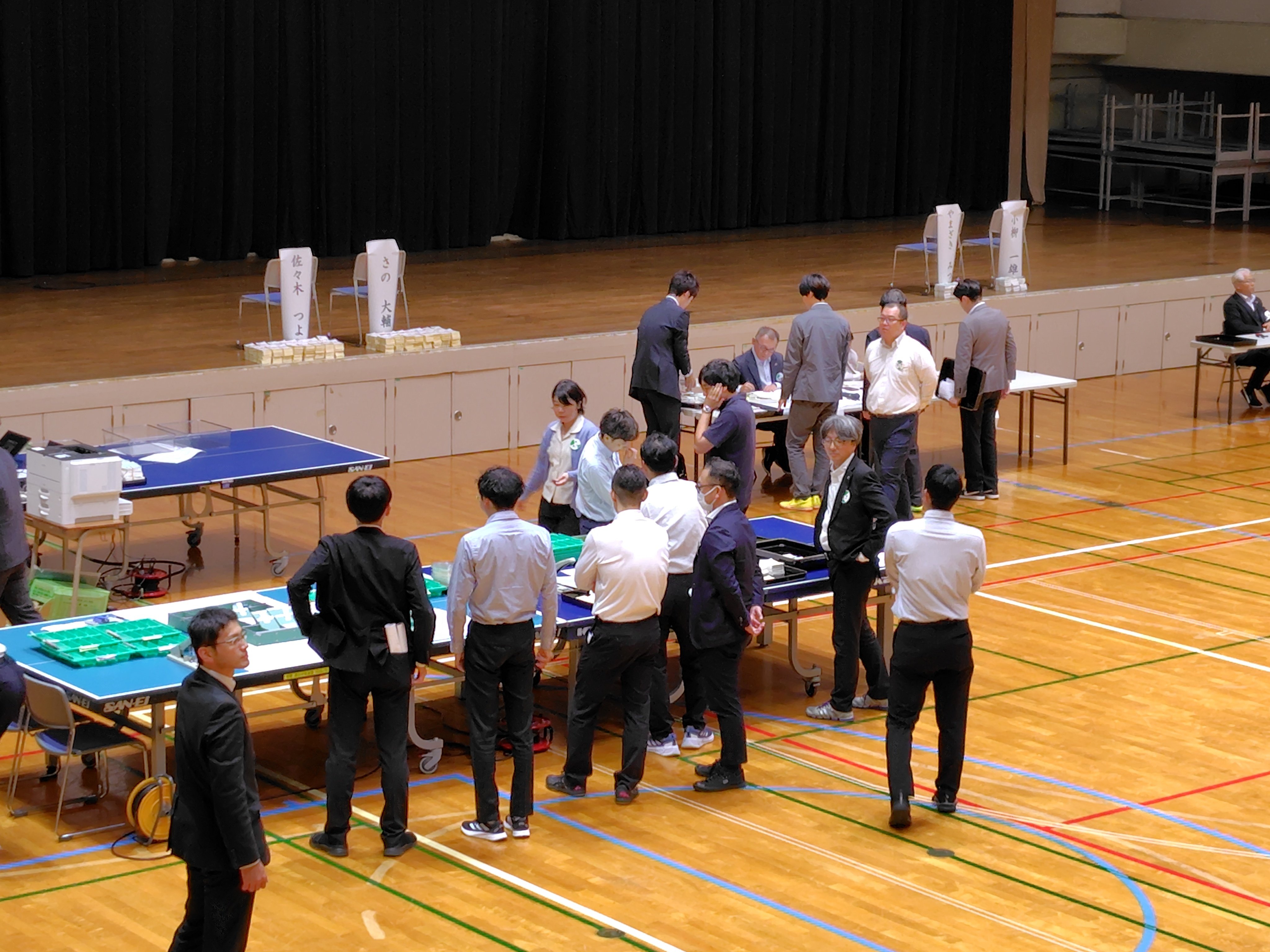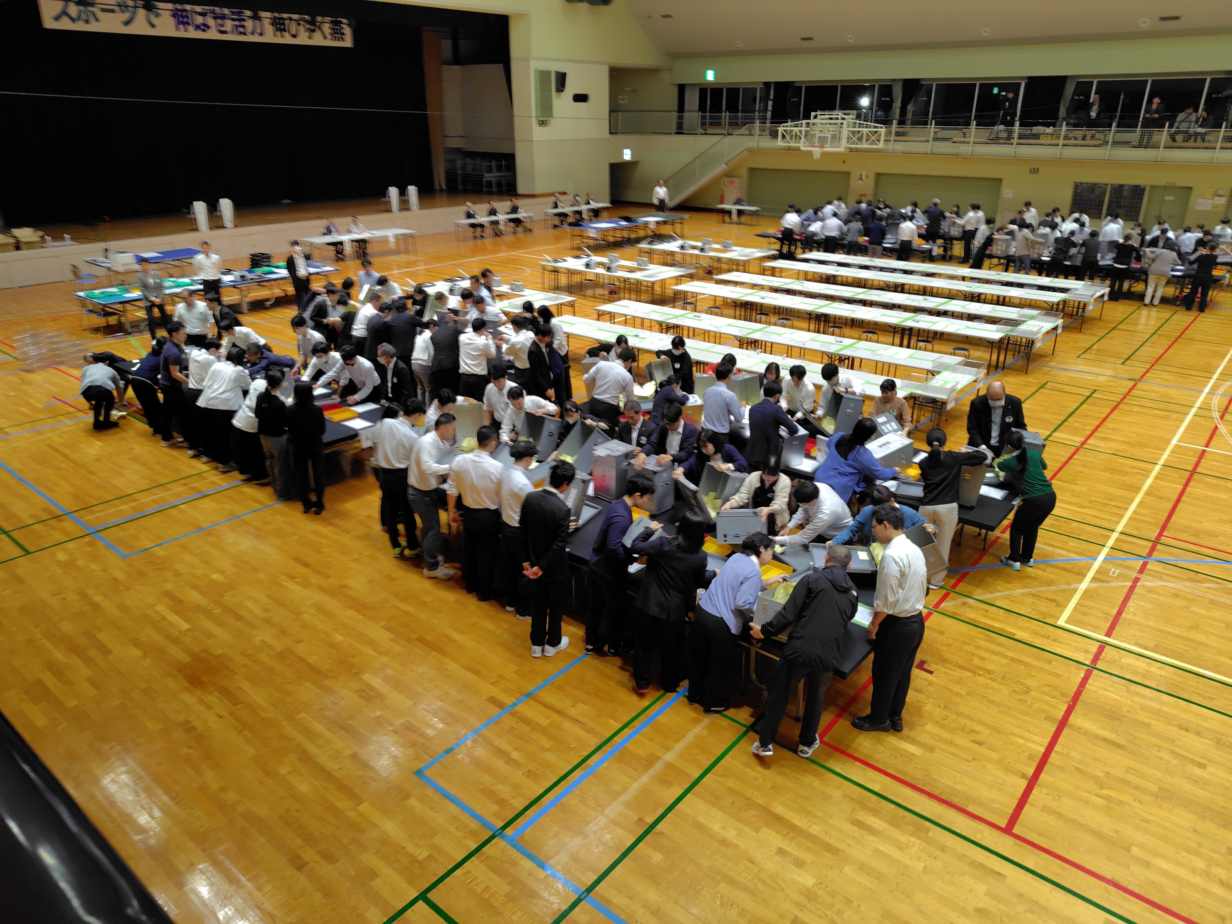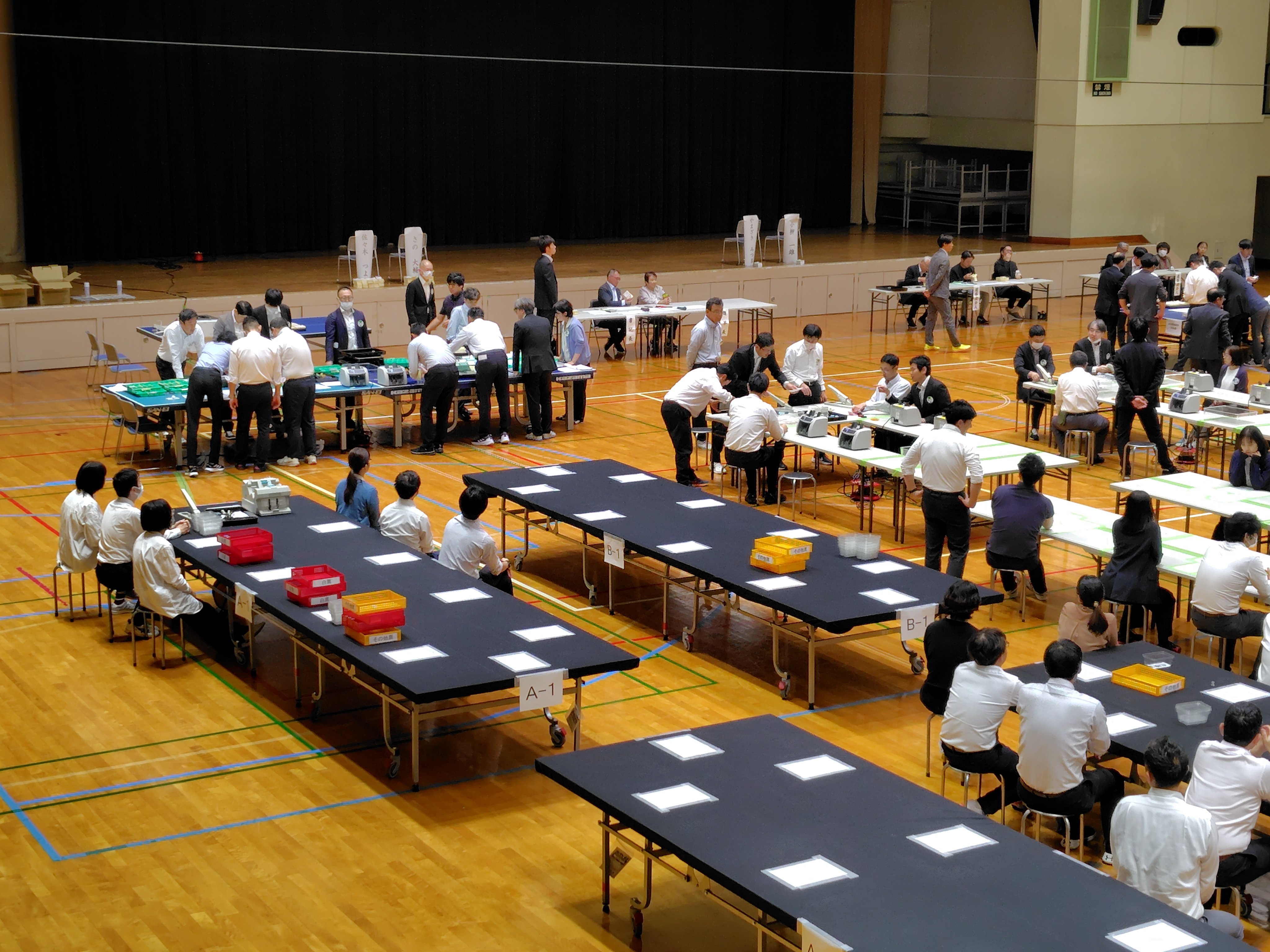 計数機を使った作業も始まり、会場には機械で票を数える音が響いています。