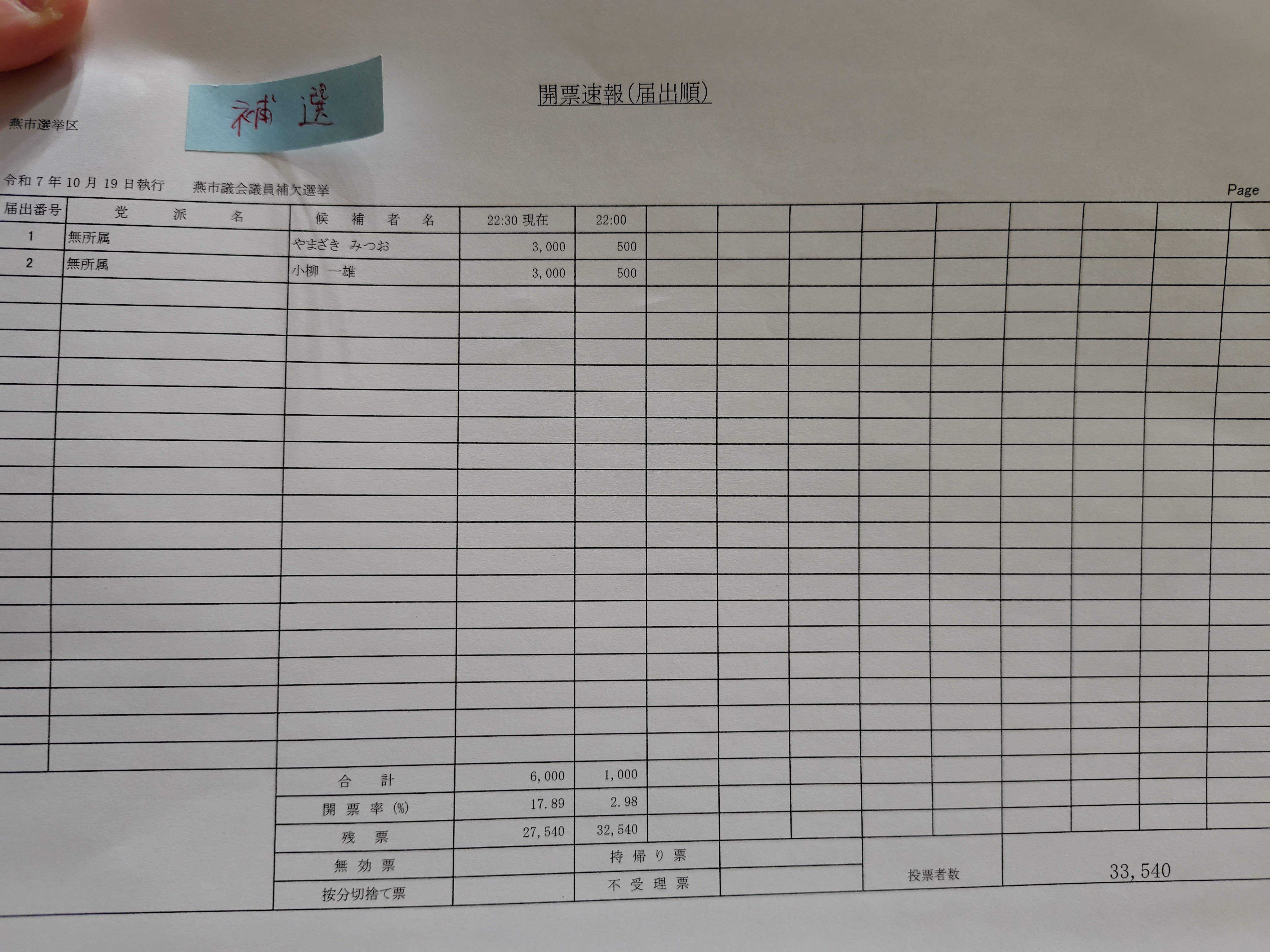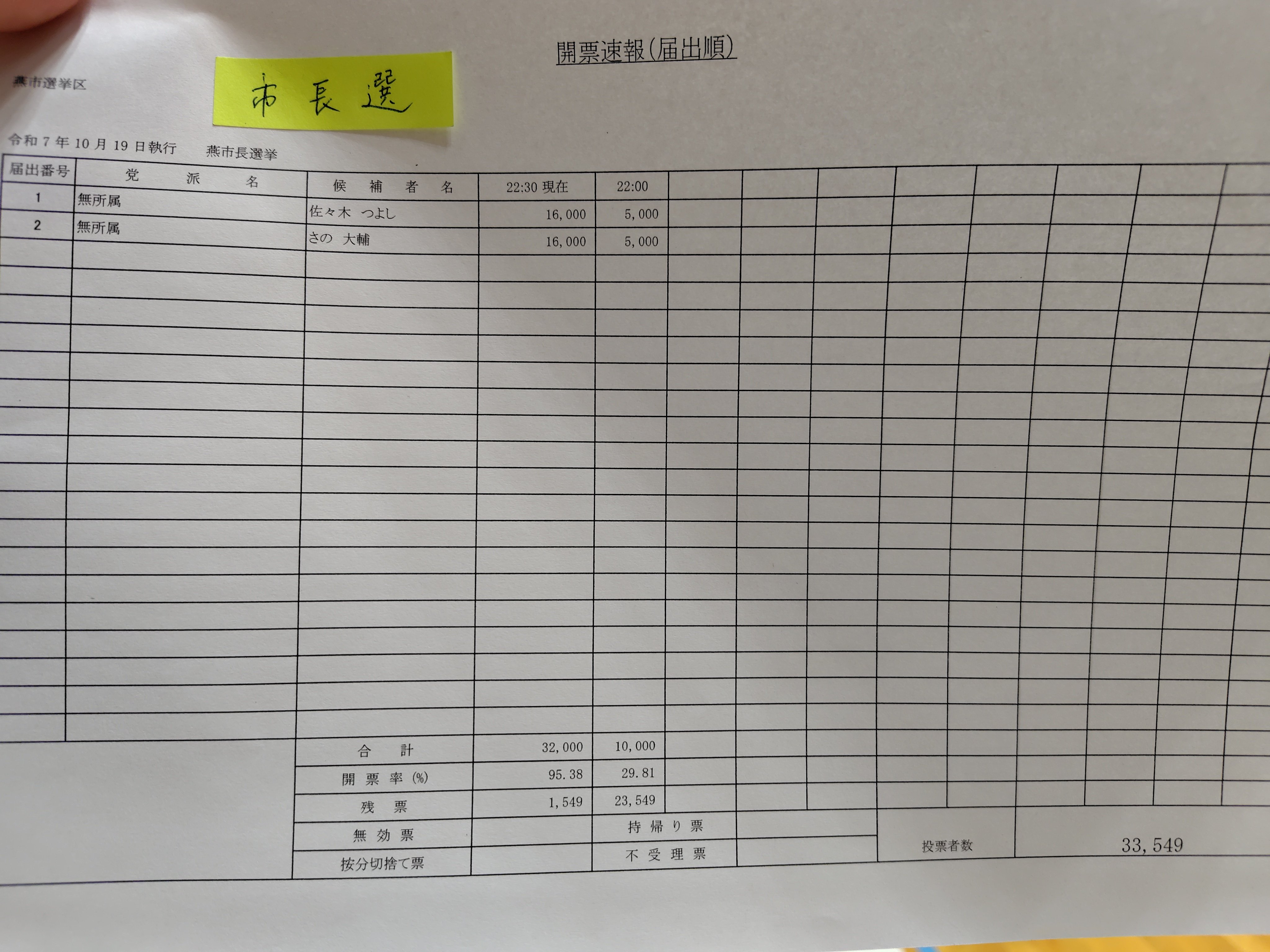 第2回中間発表は両候補とも1万6000票。残票は1549票。大接戦です。