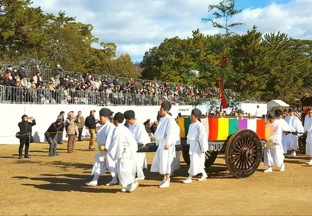 公益社団法人 奈良市観光協会(所在地:奈良市三条本町 会長:増尾 朗)は令和7年12月17日(水)に執り行われる春日若宮おん祭の「お渡り式」神事に際し、ゆっくりとお席から観覧できる3ヶ所の特別桟敷席の予約を10月20日(月)から開始します。