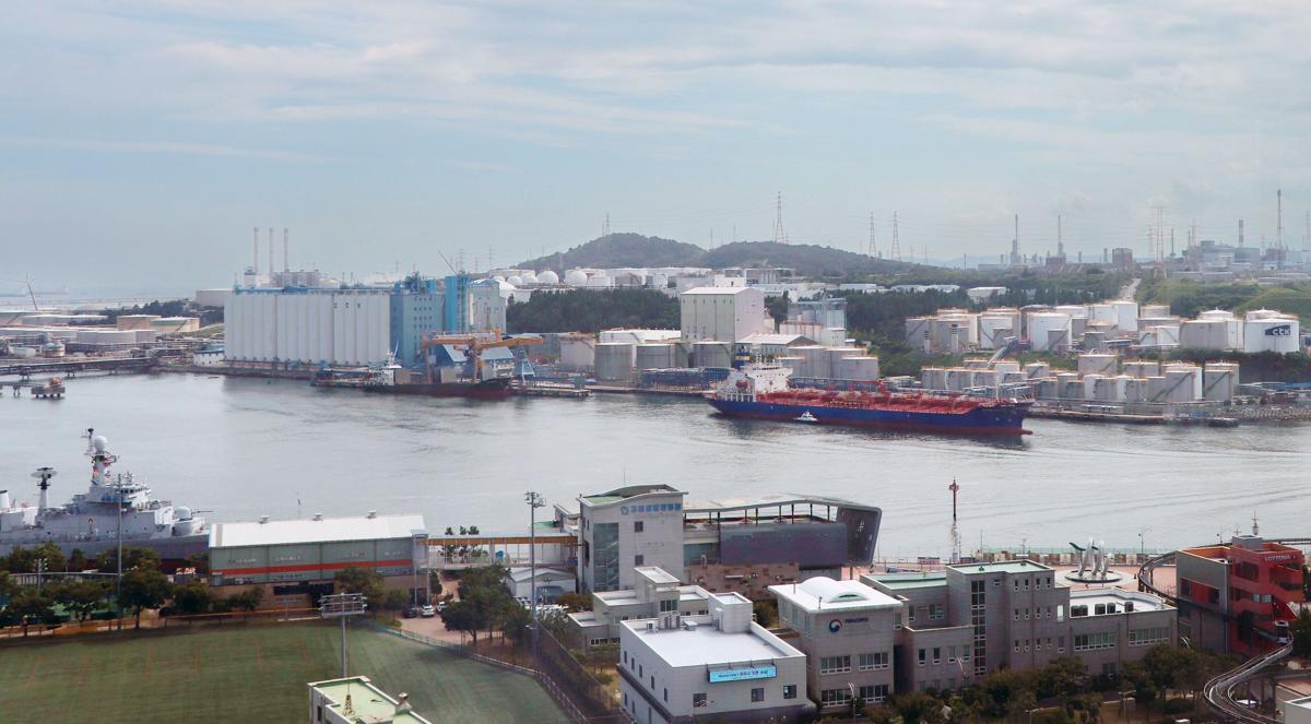韓国の首都ソウルから南東に300キロ余り。8月下旬、新潟県や新潟市の関係者と訪れたウルサン本港には、多くのタンクが立ち並び、数々の大型船が港に停泊していた。