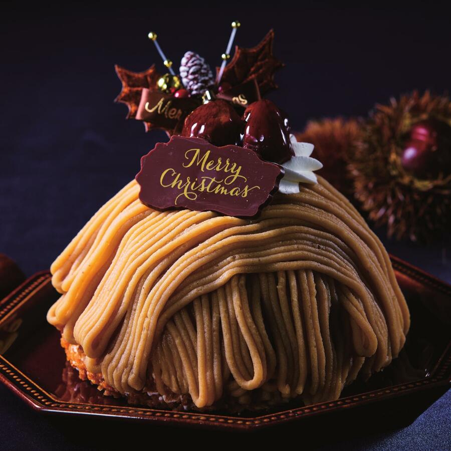 栗本来のやさしい甘みと香りをそのまま生かした、クリスマス限定のモンブランデコレーションケーキです。スポンジ、カスタード入りホイップ、和栗バタークリーム、和栗甘露煮を重ね、仕上げにたっぷりの和栗クリームを絞りました。ホクホクとした食感と深い風味を、心ゆくまでお楽しみください。