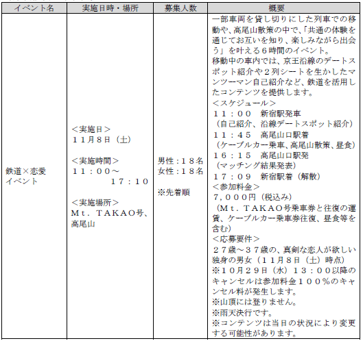 ~鉄道アセットを活用し、Mt.TAKAO号の一部車両を貸し切りにした恋愛イベントも!~