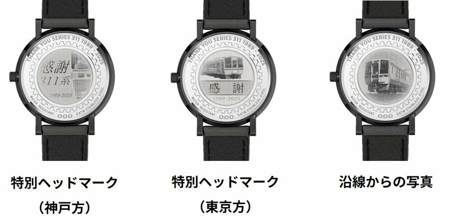 3種類から選べる裏蓋デザインには、2種類の特別ヘッドマークに加え、在りし日の311系の姿が思い出される沿線からの写真もセレクトしました。