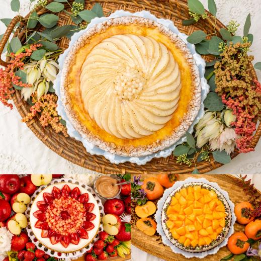 秋のフルーツを楽しむショコラタルトは、芳醇な洋梨、ほど良い酸味のリンゴ、みずみずしい柿を組み合わせ、濃厚なチョコレートと合わせた全3種類をご用意いたしました。それぞれの果実が持つ旬の美味しさとチョコレートの豊かなコクが絶妙に溶け合い、秋ならではの味わいをお届けします。ティータイムやおもてなしにもぴったりの華やかなタルトを、ぜひこの機会にお楽しみください。