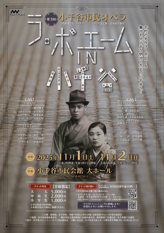 小千谷市(おぢやし)は11月1日(土)・2日(日)に第3回小千谷市民オペラ『ラ・ボエーム』を公演します。プロの歌手と市民が同じ舞台に立って共創する、地域に根付いたオペラのみどころを紹介します。
