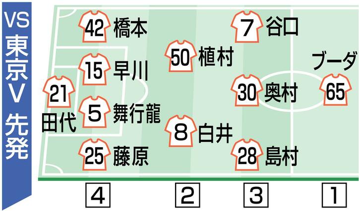 後半開始から選手を入れ替え、決定機をつくった。13分、クロスにFWブーダが合わせようとしたが、決め切れず。24分にもカウンターからMF奥村仁が狙ったが、相手GK正面。結局最後まで東京Vの堅い守りを打ち破れなかった。