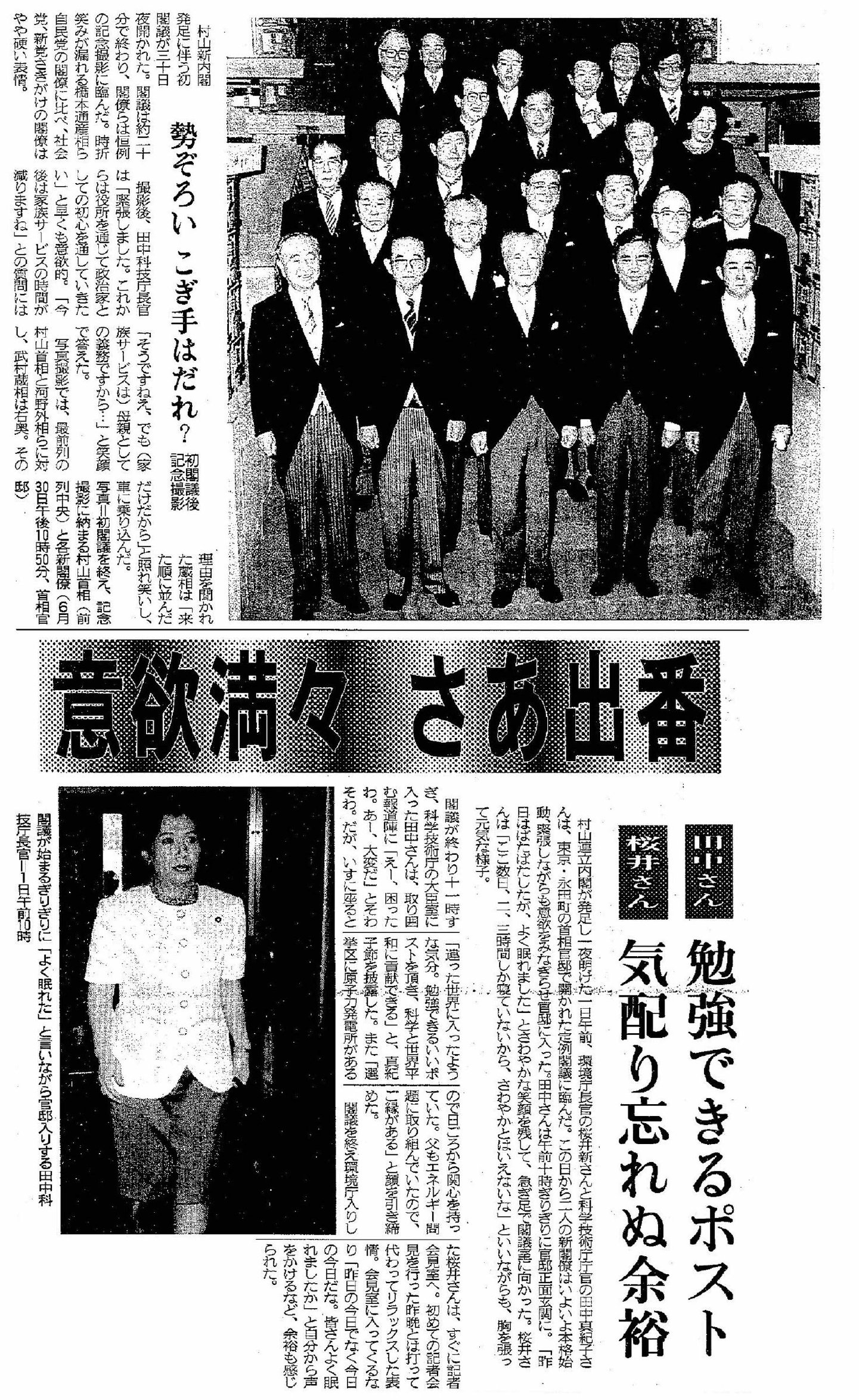 村山内閣誕生後、首相官邸での...