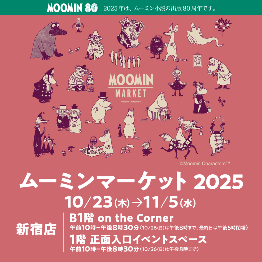 2025年はムーミン小説の出版80周年。会場にはムーミンマーケット限定商品や 80周年を記念したグッズのほか、フォトスポットも登場します。