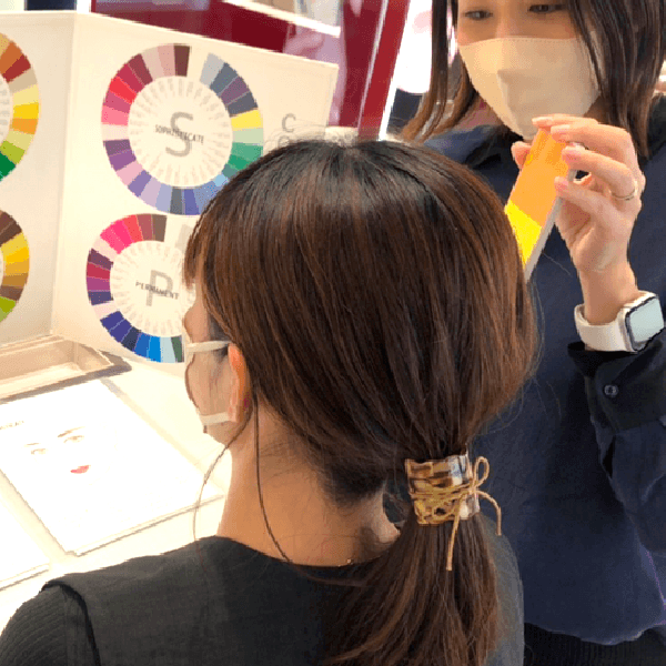 京王百貨店社員の有資格者がカラー診断を行います。さらに、診断結果に応じて、メイクアップアーティストがお客様にお似合いのメイクを提案。