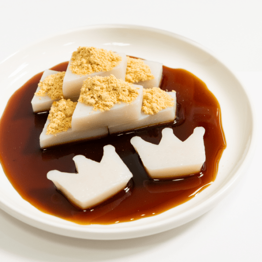 京王の王冠をモチーフにしたくず餅をトッピング。デザインもオリジナルの限定くず餅です。