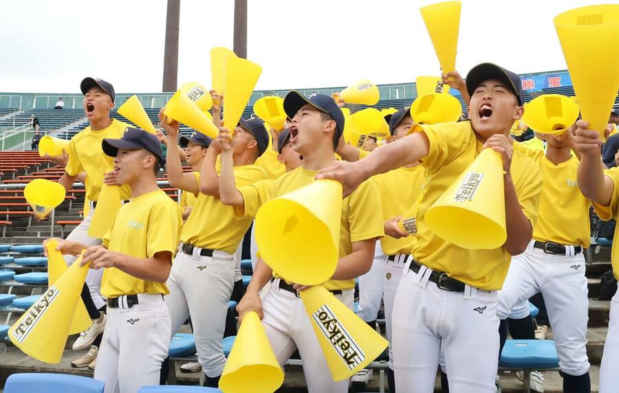 帝京長岡高のスタンドは、野球部員や保護者ら約120人が、序盤の劣勢をものともしない応援で選手たちを勇気づけた。
