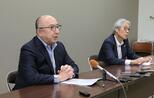 東電柏崎刈羽原発の再稼働を巡る独自の意識調査について説明する、佐々木寛・新潟国際情報大教授(中央)ら=19日、新潟市中央区