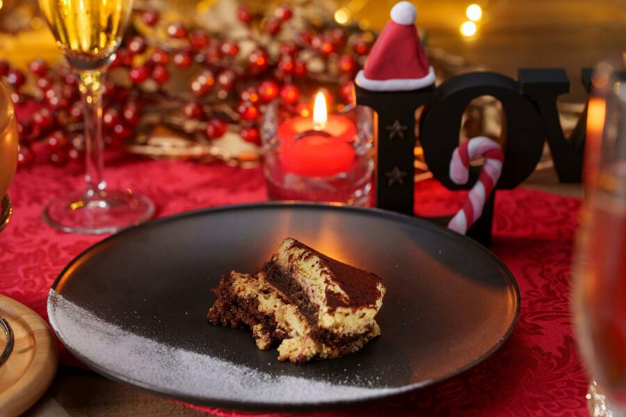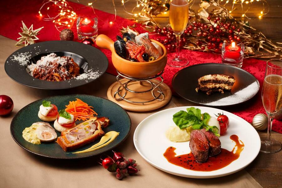 フルーツトマトやあんぽ柿、宮城県産あんこう、仙台名物の牛たん、山形県産牛など、東北ならではの食材をふんだんに取り入れた全5皿をご用意しました。前菜から魚・肉料理までをシェアスタイルで提供し、大きな器で仕立てた特製ティラミスはスタッフがテーブルで取り分けてサーブ。目の前で仕上がるライブ感とともに、聖夜のひとときをより一層特別に彩ります。