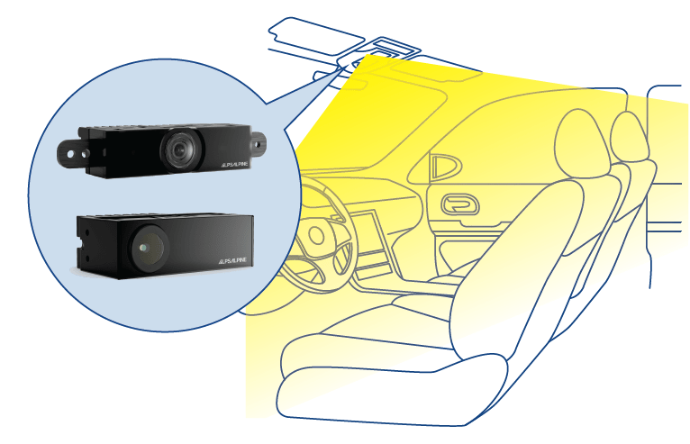 2種類の小型カメラを活用する事で、ドライバー、同乗者をモニタリングし、安全で快適な車室内環境を提供するインキャビンセンシング。RGB-IRカメラ※1では視聴用のColor映像を、TOF-IRカメラ※2では測距用のDepth画像を、それぞれ認識用の赤外線(IR)画像を同時に撮影します。これにより、暗所でも人物の動きや位置を正確に把握でき、車室内への子供置き去り防止や、搭乗者の耳の位置を測定し、最適な音響を提