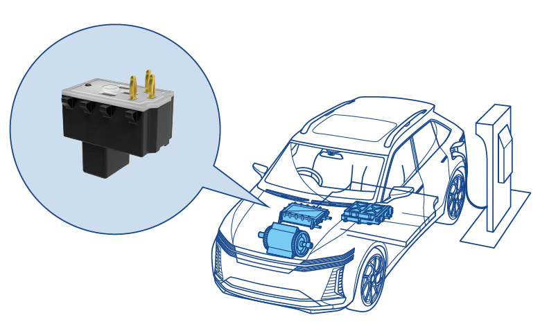 の自由度が向上します。組込み後、補正不要で使用できるため、工程費の削減が可能です。コンパクトながらも大電流(~2000A)のセンシングに強みを持ち、EVやハイブリッドカーのインバーター、バッテリー部などへ搭載が可能です。