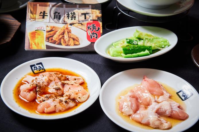 A:焼肉牛角として、牛角ならではの「鶏焼肉」を楽しんでいただきたいと考えた際に、希少部位「ふりそで」に目を付け、黒胡椒が隠し味の「特製醤油」の味付けにこだわりました。もちろん、牛角自慢の「塩ダレ」味もオススメです。