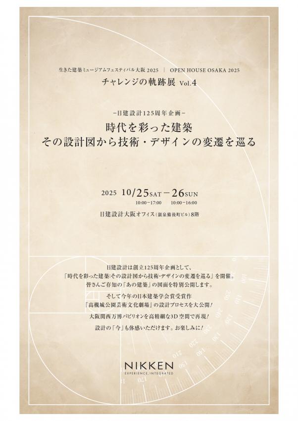 株式会社日建設計(本社:東京都千代⽥区、代表取締役社⻑:⼤松敦、以下「日建設計」)は、2025年10月25日(土)~26日(日)に「生きた建築ミュージアムフェスティバル⼤阪2025」(以下、イケフェス)に参加いたします。
