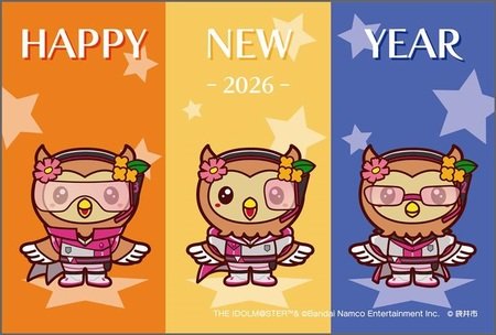 さらに、本市が毎年公開している年賀状テンプレートにアイドルマスター SideMとのコラボバージョン3種類が登場。11月1日から市ホームページにて、利用が可能(無料)。